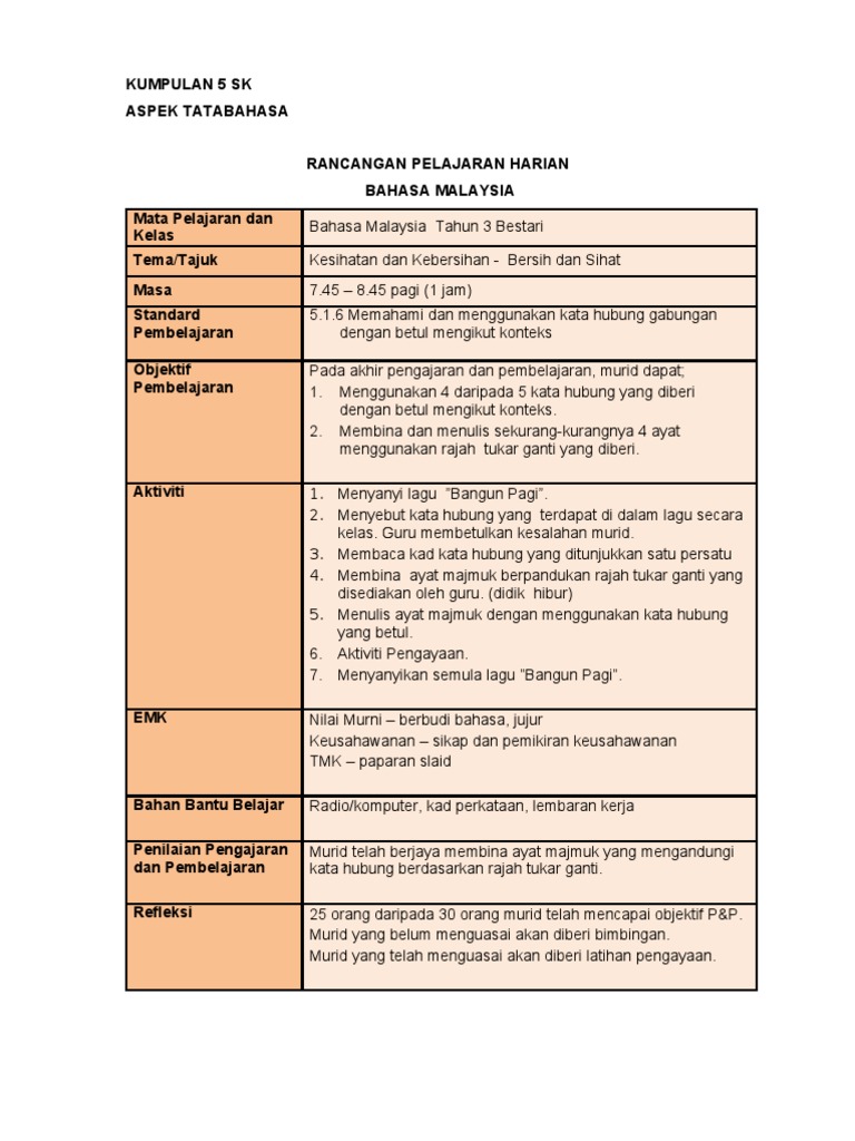 Contoh Rph Bahasa Melayu Sjkc Tahun 3 Pak21