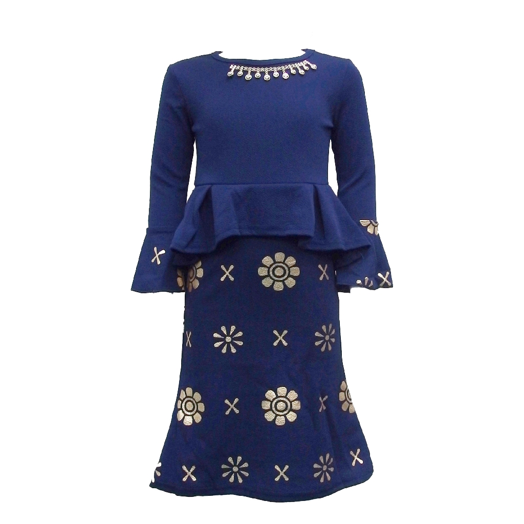 Baju Raya Peplum Moden Kanak 10 Tahun Baby Blue Corak